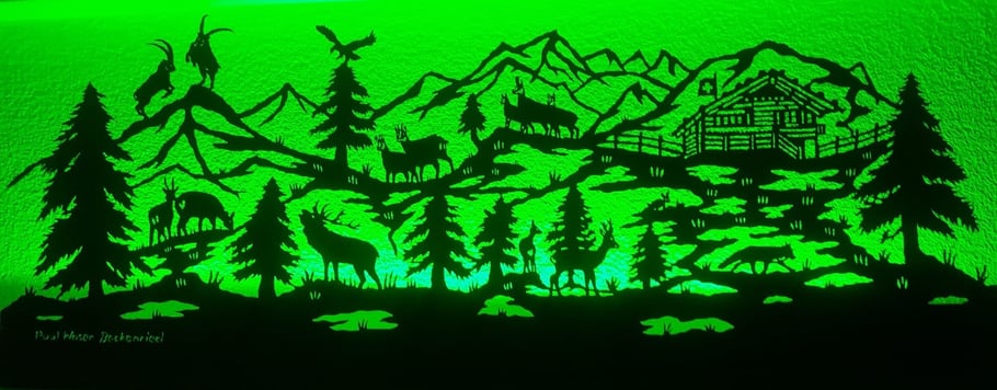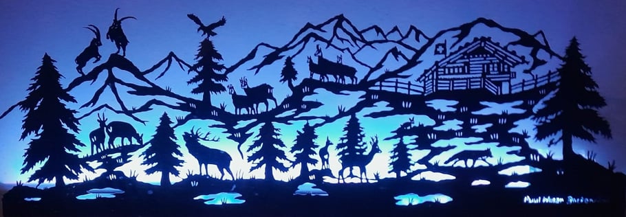 Seit kurzem arbeite ich mit einem Metallbauer zusammen, welcher es mir ermöglicht, meine Scherenschnitte auf Metall zu bringen. Ein erstes Exemplar ist bereits in zwei unterschiedlichen Grössen